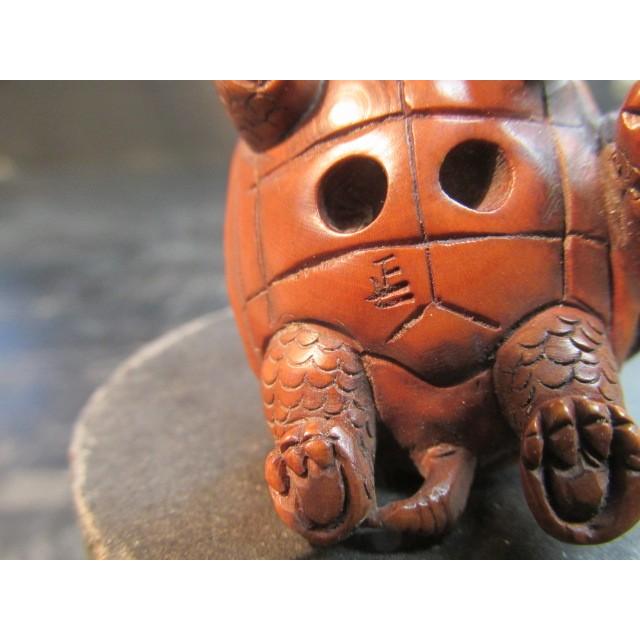 - 美術品・アンティーク・コレクション > 彫刻・オブジェ > 木製 提物 根付 玉松(銘) 茶合形 蝙蝠 彫刻 木彫り【MA926】 正一銘柘植彫り出し親子亀根付 13g 木製 彫刻 木彫 亀の親子 根付